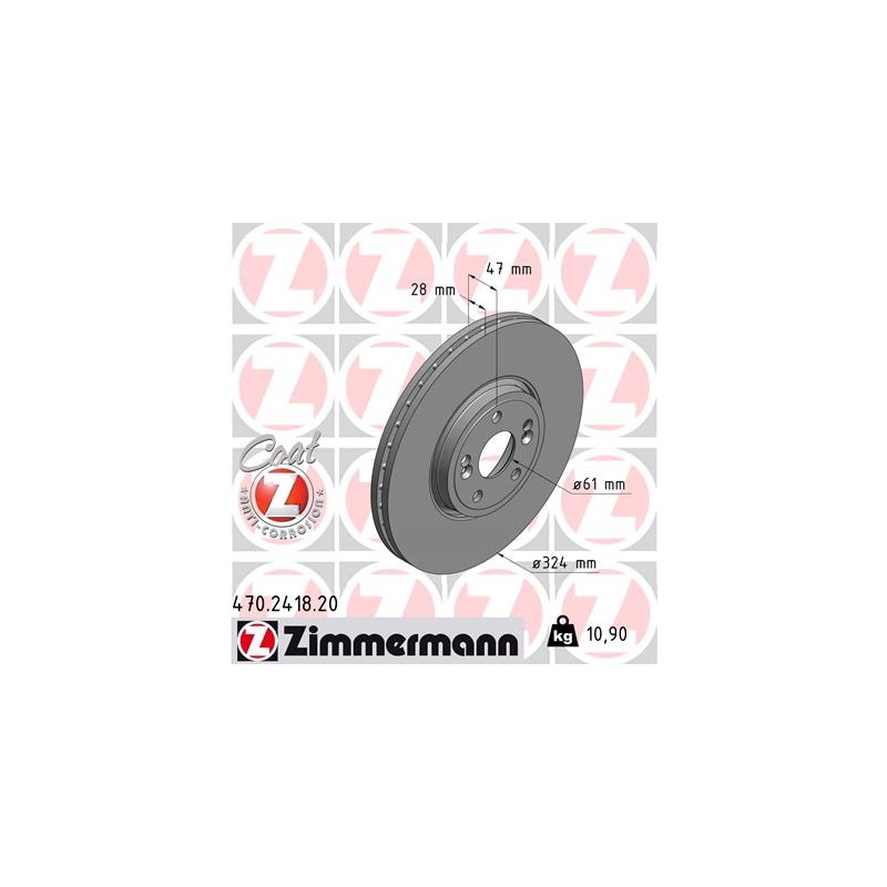Zimmermann schijven zijn gecoat met "Coat Z" corrosiebescherming, wat een hoge corrosiebestendigheid garandeert en een mooie afwerking.